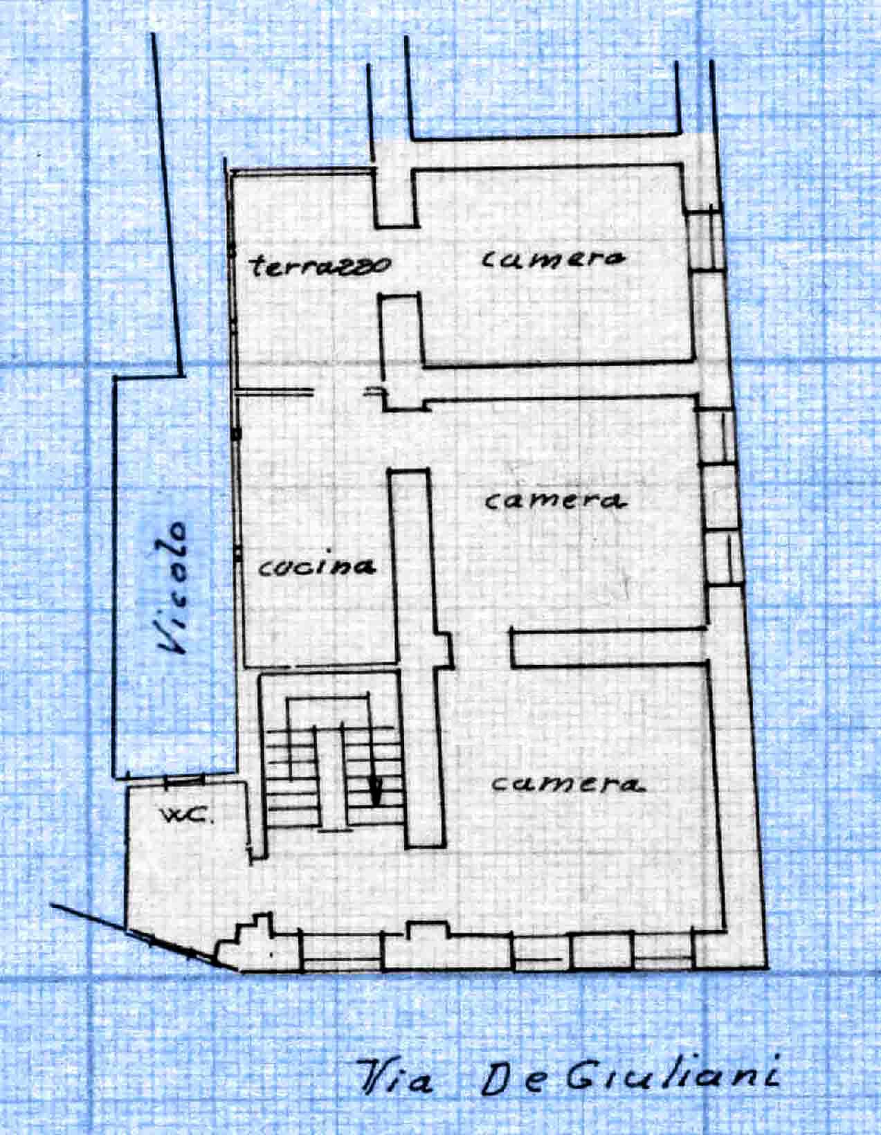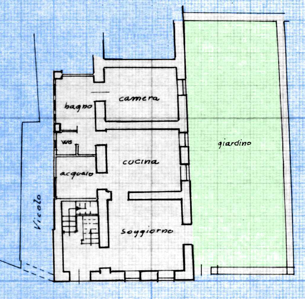 Disposto su tre livelli + giardino di metri 6x16 + sottotetto pedonabile + cantina di metri 4x4. Composto da tre appartamenti di 5 vani ciascuno. Totale 15 vani di cui 3 bagni. Per i dettagli si vedano le Mappe Catastali Gli appartamenti al primo e al secondo piano sono subito abitabili. E' opportuno aggiornare gli impianti tecnologici.
